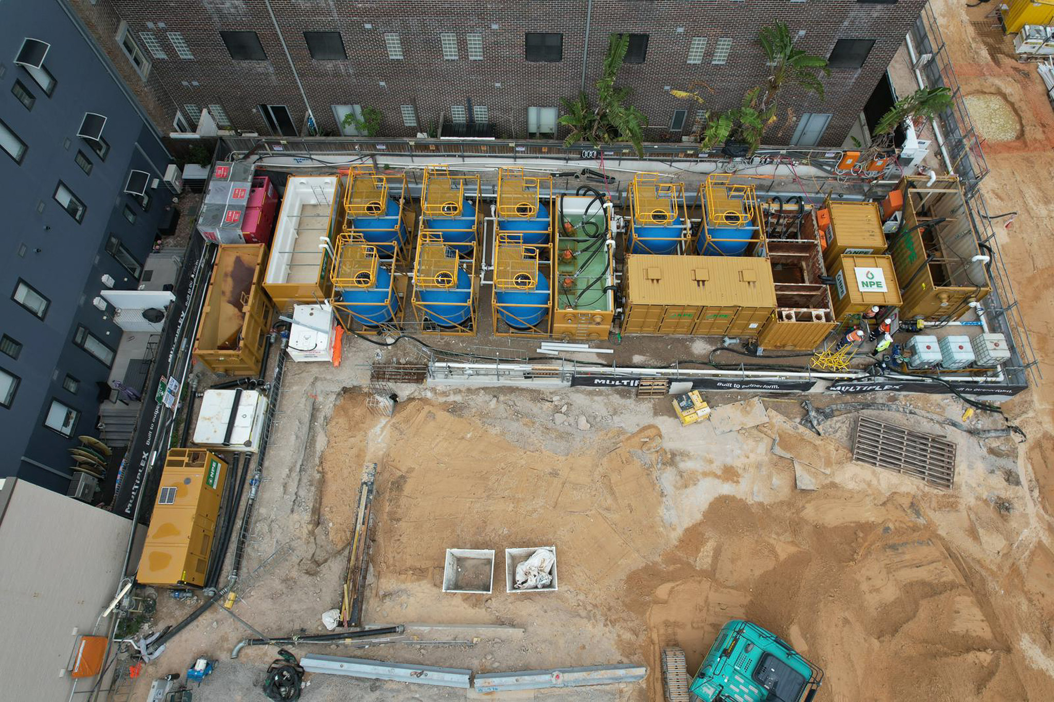 NPE was awarded a dewatering and water treatment project to facilitate construction activities. To manage this project effectively, the temporary groundwater level beneath the basement has been set to 1.0 m below the proposed bulk excavation level, resulting in a level of 3.0 m during the excavation and dewatering processes.