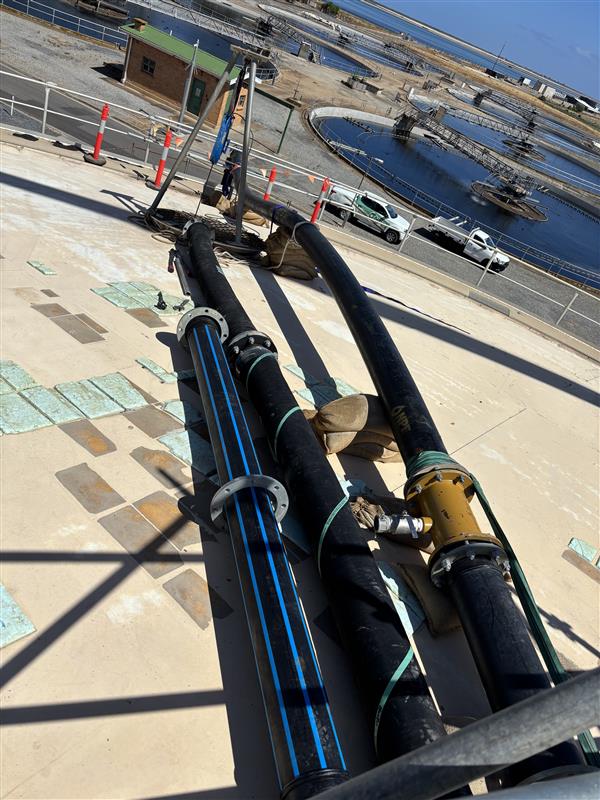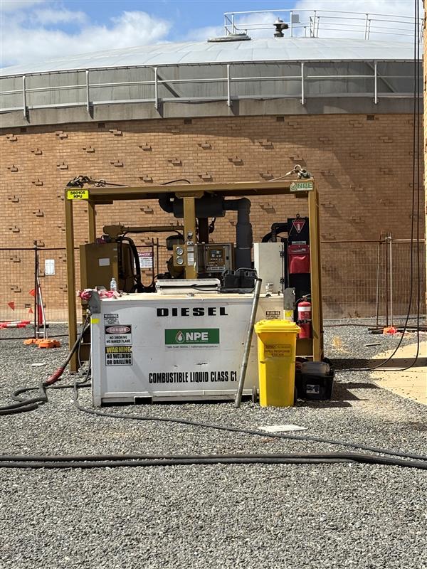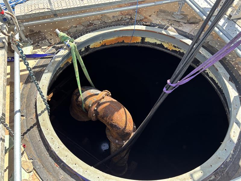 The works involved the complete pumping and cleaning of the digester using NPE’s chopper submersible pump and HPU, along with the installation of all suction and discharge piping. NPE managed every aspect of the cleaning process, including working at heights, confined space entry, and coordination of a contract crane provider, with a 65‑tonne crane positioned onsite throughout the pumping phase. The team also oversaw vacuum truck operations and waste disposal, ensuring the digester was thoroughly cleaned and fully sanitised by project completion.